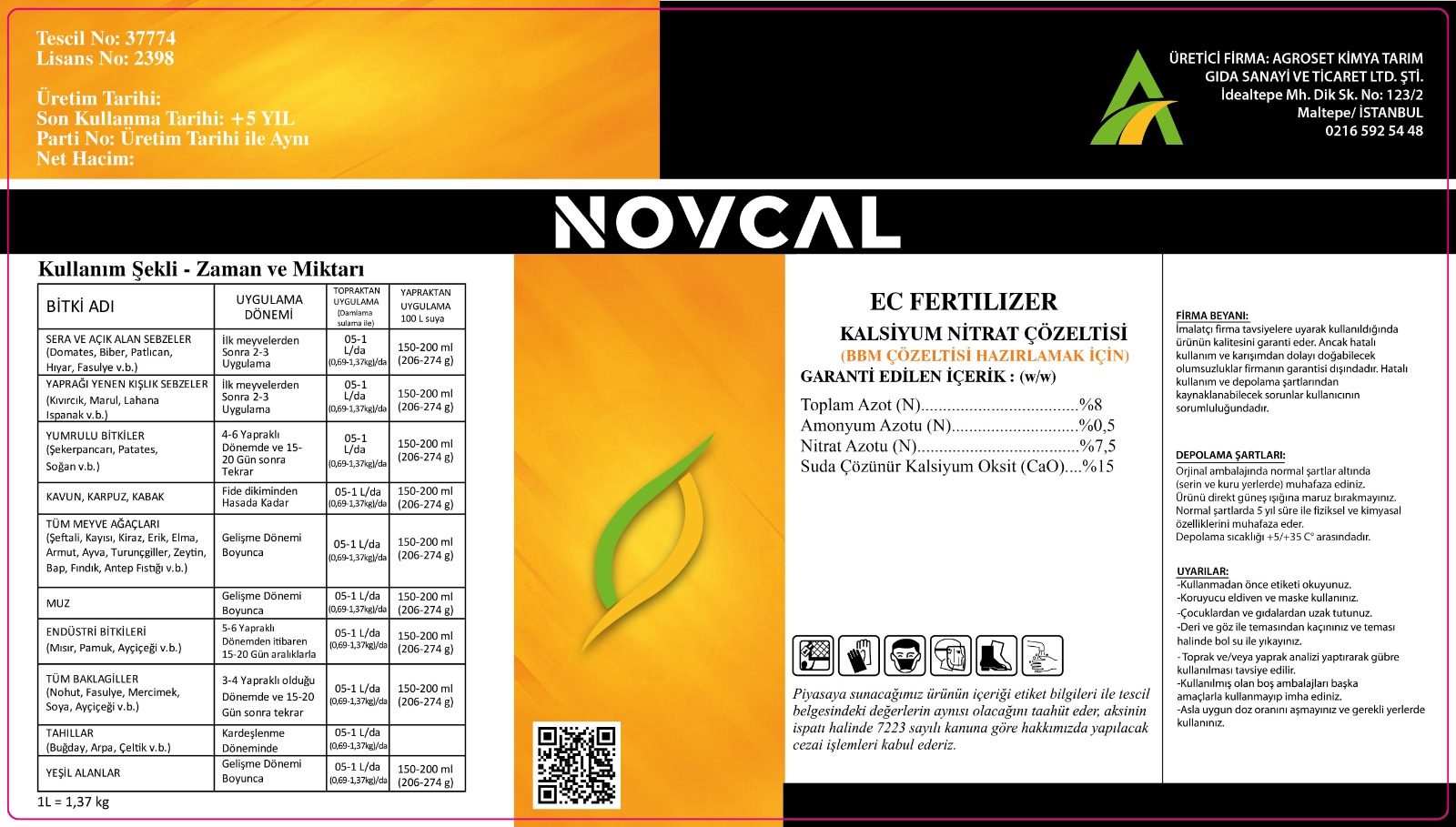 NOVCAL, Kalsiyum ve Azot içeren sıvı bir gübredir. Ürün, Kalsiyum emilimini artırmak ve meyve ve sebzelerde Kalsiyum eksikliklerini önlemek için benzersiz teknolojilerle güçlendirilmiştir. NOVCAL Hem kalsiyum hem de nitrat formunda azot içerdiği için hızlı ve etkili bir besin kaynağıdır. kalsiyum hücre duvarının ana yapı taşlarındandır. Bu nedenle bitki dokularını sertleştirir, yatmayı ve kırılmayı azaltır. NOVCAL; domates biber, salatalık, çilek ve benzeri ürünlerde çiçek burnu çürüklüğü ve uç çürüklüğü gibi fizyolojik hastalıkları önler ve meyveler daha iri, sert ve dayanıklı olur. Kök gelişimini destekler böylece bitkinin besin ve su alınımı artar. NOVCAL’ da ki nitrat formundaki azot bitki tarafından hızlı alınır ve yapraklar daha canlı yeşil olur ve büyüme hızlanır. NOVCAL kullanılan meyve ve sebzelerde yumuşama ve bozulma daha geç olur.